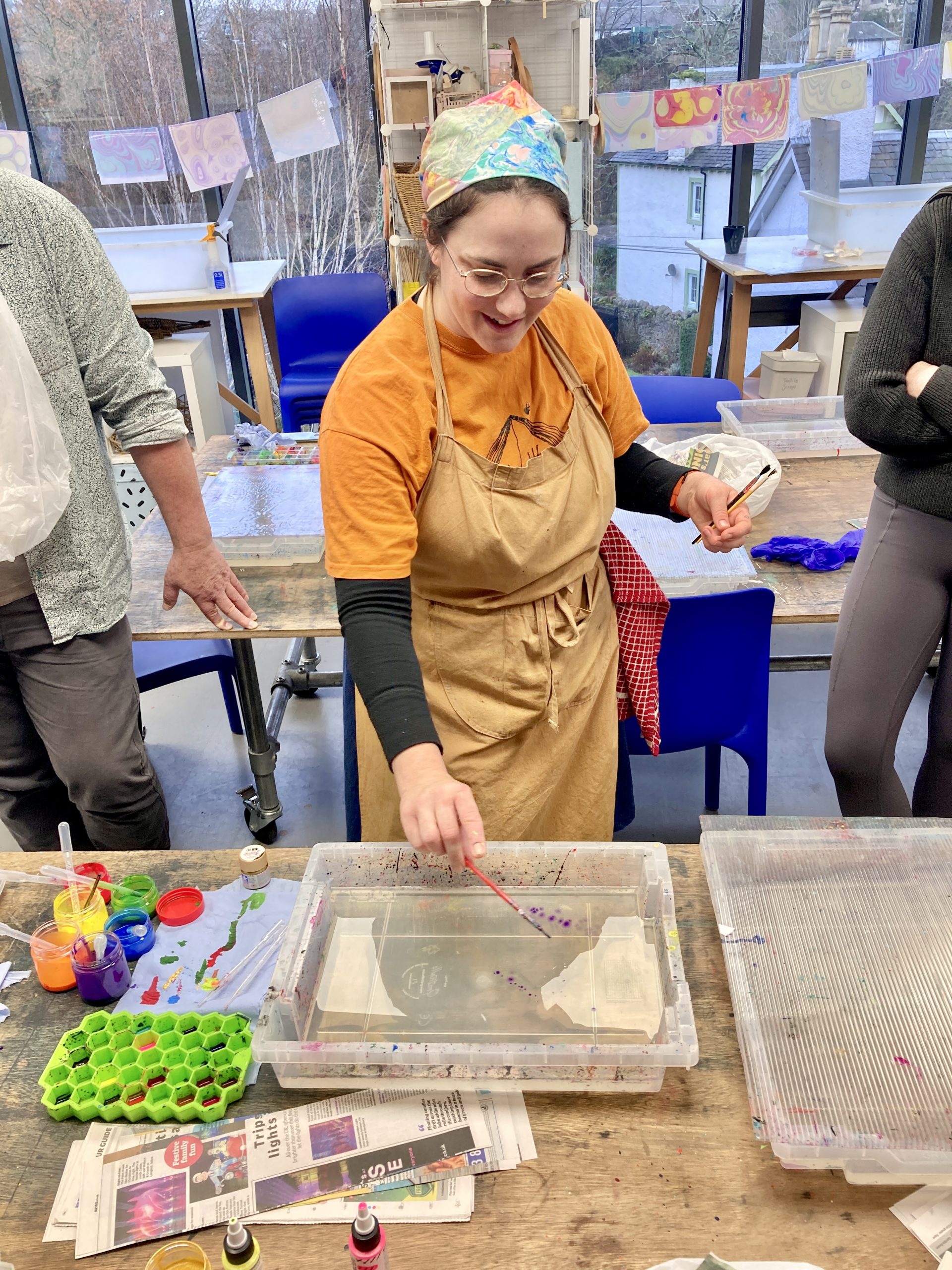 Shona will teach you traditional marbling techniques using a specially prepared thickened water bath and high quality acrylic inks. We will experiment with different methods of application using brushes, droppers and handmade tools, allowing you to play with patterns and colour. With a wide range of colours available, you’ll have the opportunity to experiment with various styles – whether you’re drawn to bold, groovy designs or soft, pastel patterns. You’ll have the freedom to explore your own creative ideas, guided by Shona’s expert support